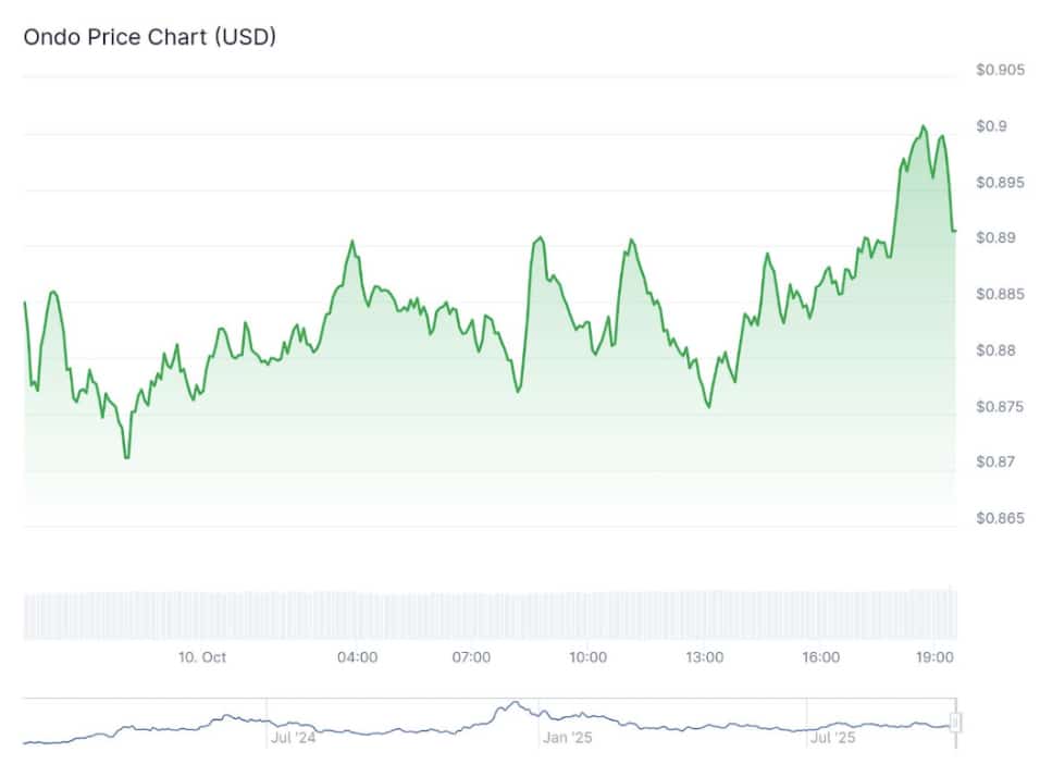 According to Coingecko, ONDO was trading at a silent level of approximately $0.90 in the last 24 hours, with an approximate volume of around $180-$186 million transactions per day.