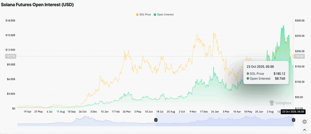 CoinGlass reported an open interest of just below $9Bn and a daily futures volume of above $20 billion, reflecting a sharp increase in leveraged activity.