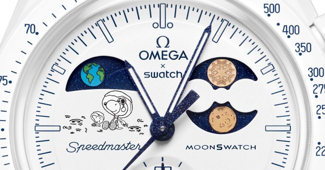 Clumsy moniker aside, this version takes the all-white 2024 Snoopy model (WIRED’s top pick of the entire collection), mixes it with the Earthphase MoonSwatches, and replaces the inferior original strap for a superior white and blue Swatch rubber velcro one. Aesthetically, it’s definitely a win, but this is not the Cold Moon’s party trick.