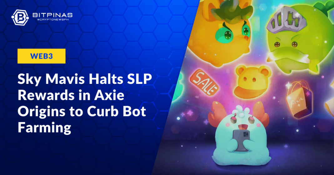 This article is published on BitPinas: Sky Mavis Halts SLP Rewards in Axie Origins to Curb Bot Farming