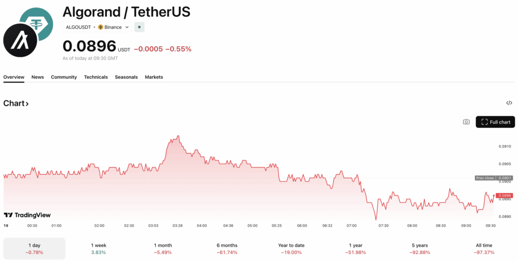 For ALGO price action, the math is straightforward but brutal. The token is changing hands around $0.09, a level that serves as critical support.